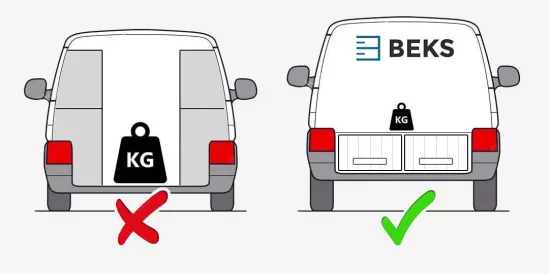 Hver kilo du tar for mye med deg vil koste deg 0,1 liter drivstoff for hver 100 kilometer du kjører. Bare regn det ut. Hvis det er for mye trøbbel, få bussen utstyrt med BEKS. Vi tilbyr det letteste kjøretøyutstyret og gjør det med 10 års garanti.